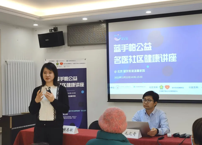 12月22日下午2点,“蓝手帕”公益-名医社区健康讲座走进望京地区温馨家园,活动特邀解放军总医院第一医学中心神经外科毛之奇主任和谢惠敏医师为社区老年人就帕金森病的防治方法和居家运动方法进行讲解,普及相关健康知识,教大家做自己健康的总导演。